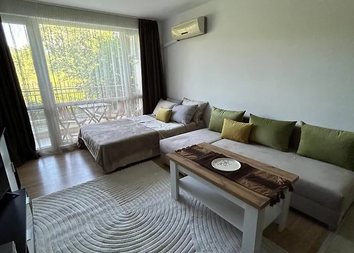 Offering an outdoor pool, the 45 m^2 Lyatno Studio Apartment is situated at a distance of 2.9 km from Action Aquapark. The apartment is located in the Yurta district and features a private garden.